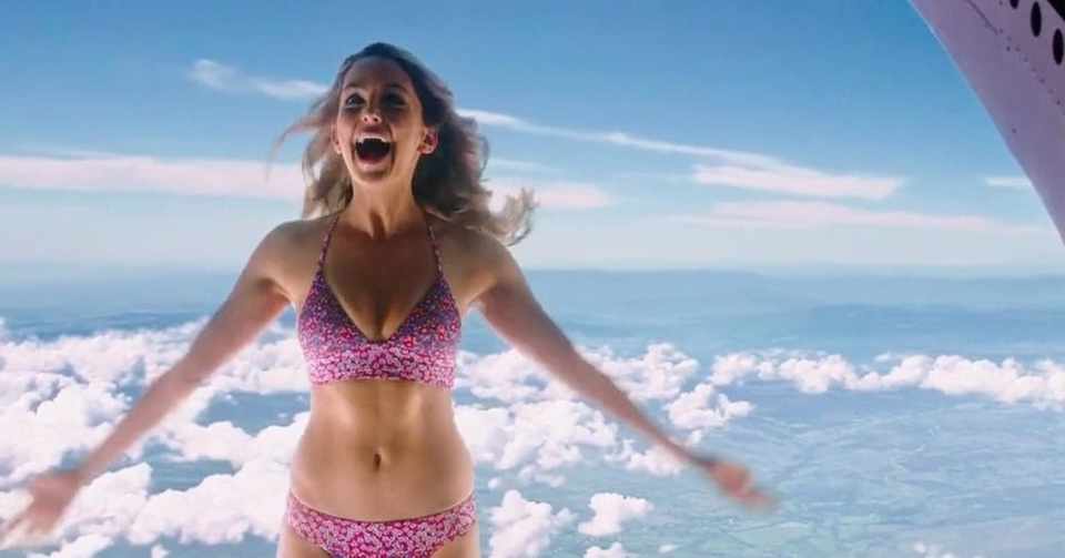 スカイダイビングでパラシュートなし(水着)で落下。